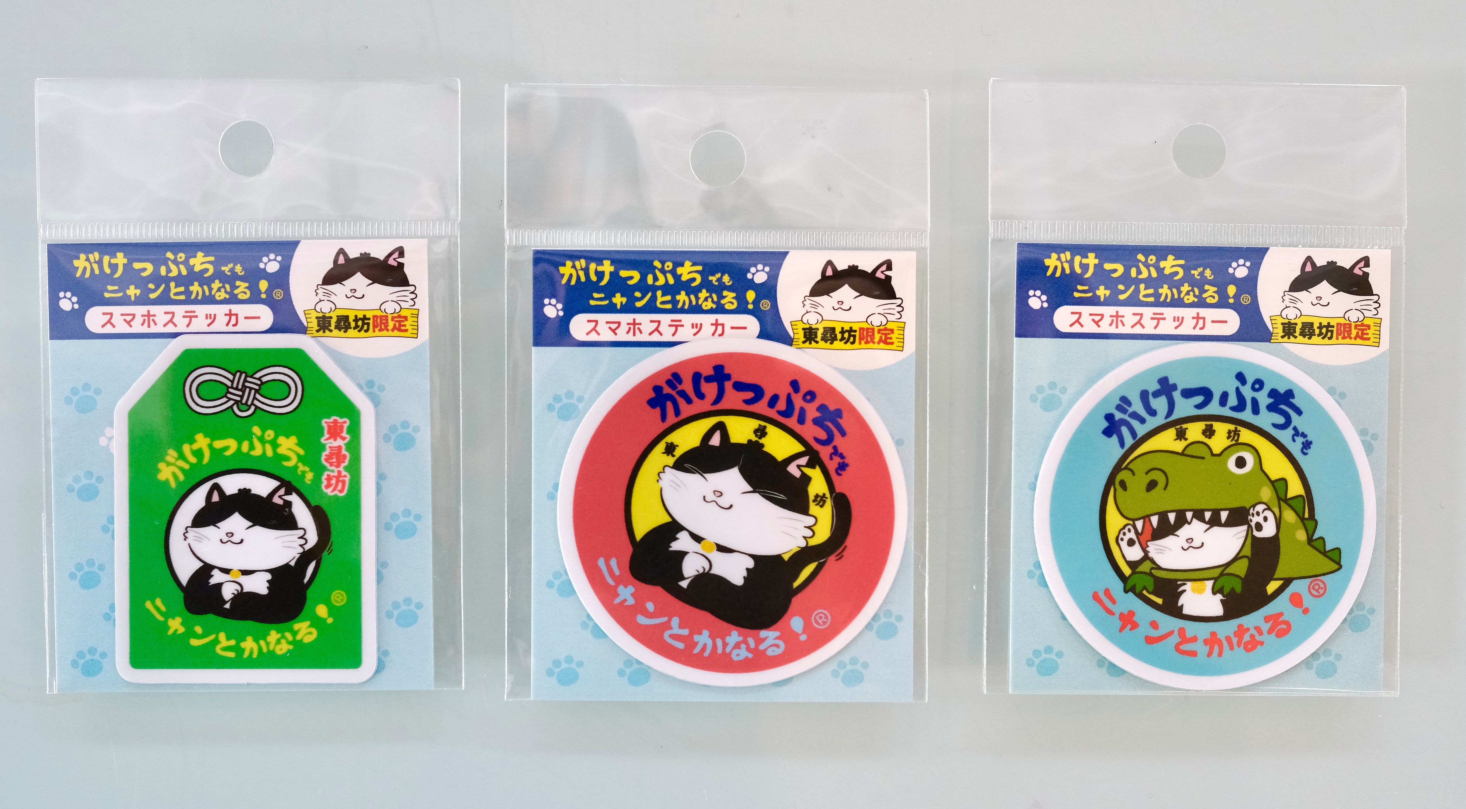 がけっぷちでもニャンとかなるステッカー3枚セットB(お守り・恐竜・丸)